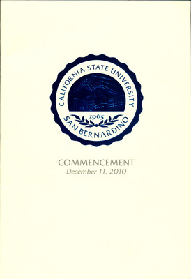 Digitized versions of the California State University, San Bernardino commencement program from 1967-1998, including the Coachella Valley Campus (Palm Desert Campus) commencement programs from 1994-1998.